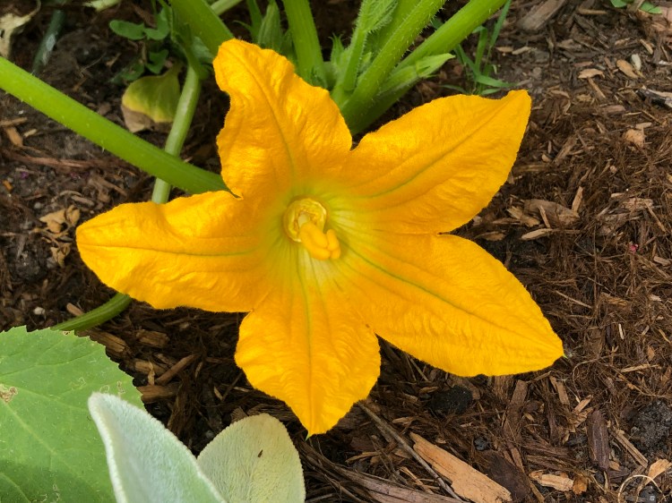 This morning I ran straight out to get a photo of my first zucchini blossom.