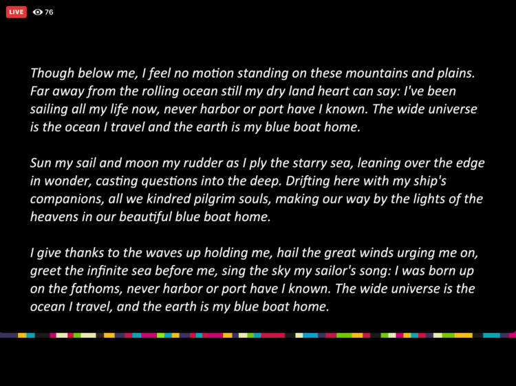 Finally here’s a video of Blue Boat Home. May the words and tune get stuck in your head all day and rock you to sleep at night.