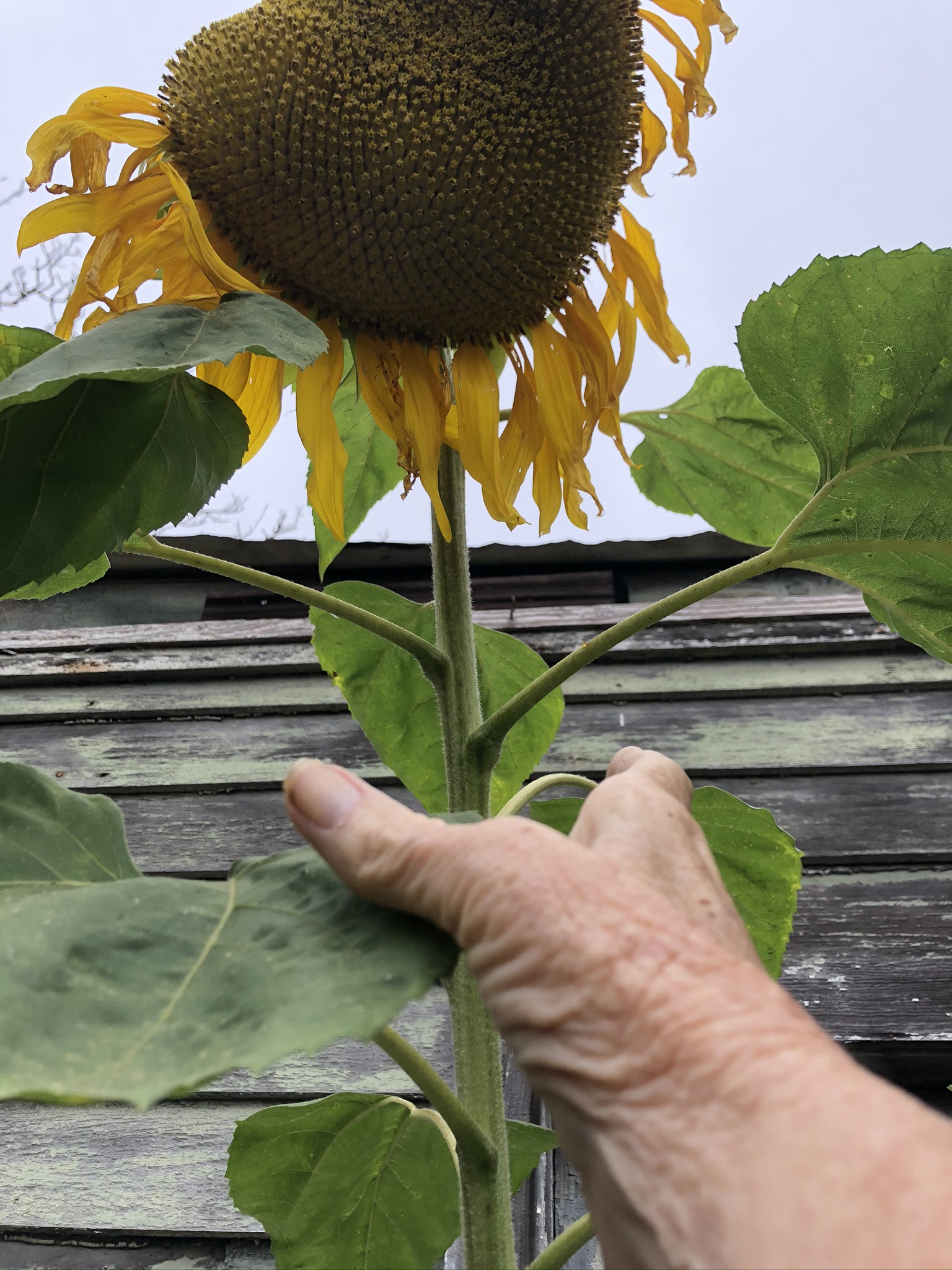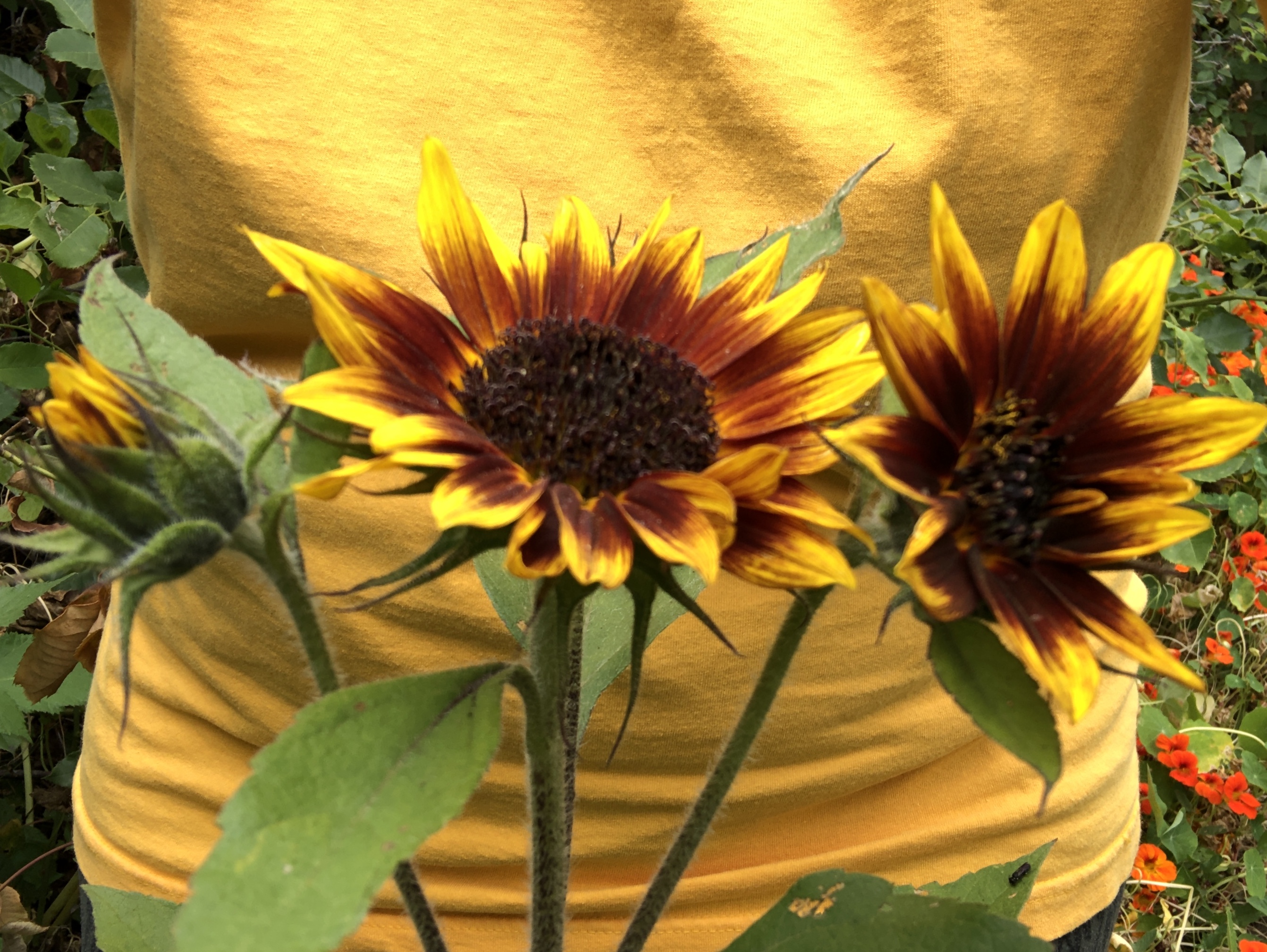 My example is a photo of of sunflowers that were facing away from me so I reached around and over to capture their upturned faces