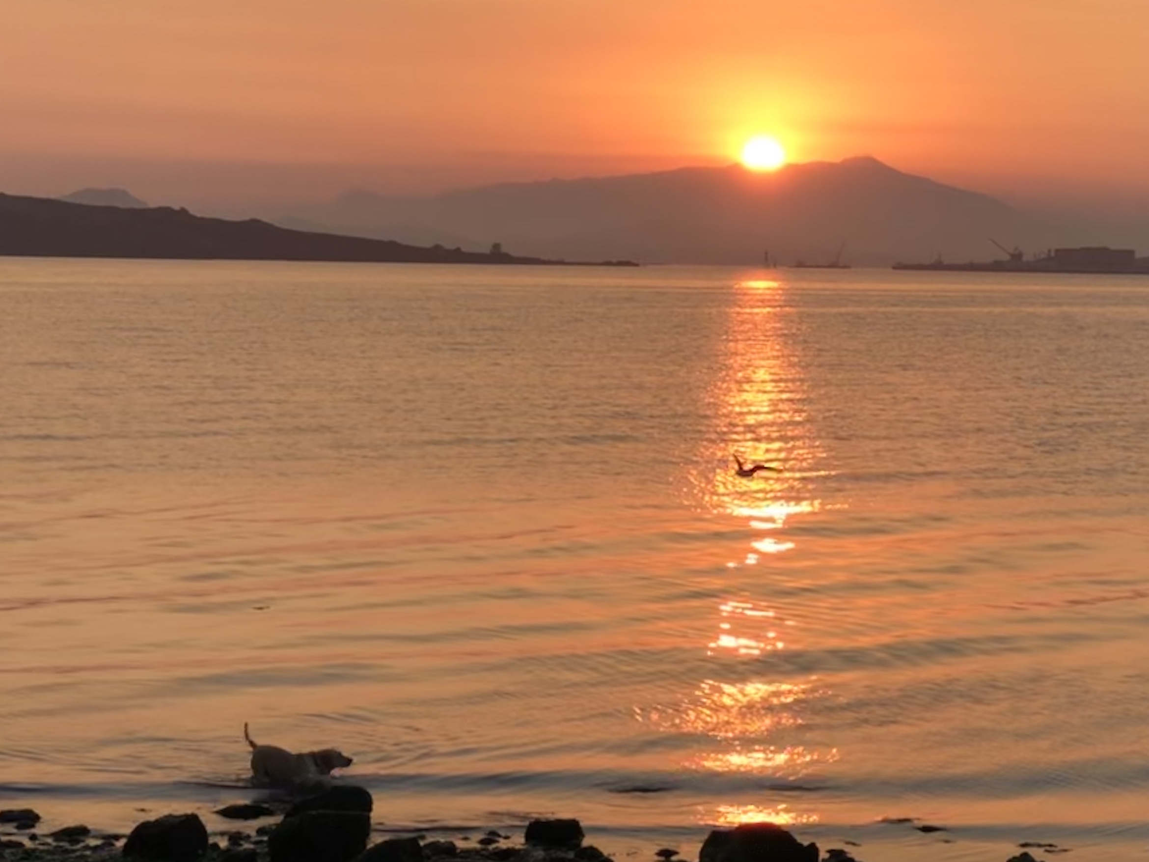 Debbie Smyth Shows us wet Rainy places. It hasn’t rained here in a long time. Here’s tonight’s smoky sunset with a wet dog