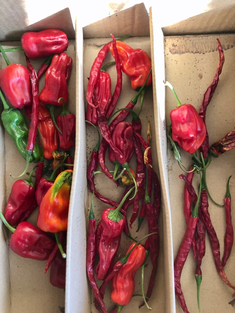 Our neighbors gifted us with a box of sweet red peppers to add spice to our meals. I however, saw them as photo opportunities. Great to share on Cee’s Mid Week Maddness Challenge Close UP. Here’s the box: