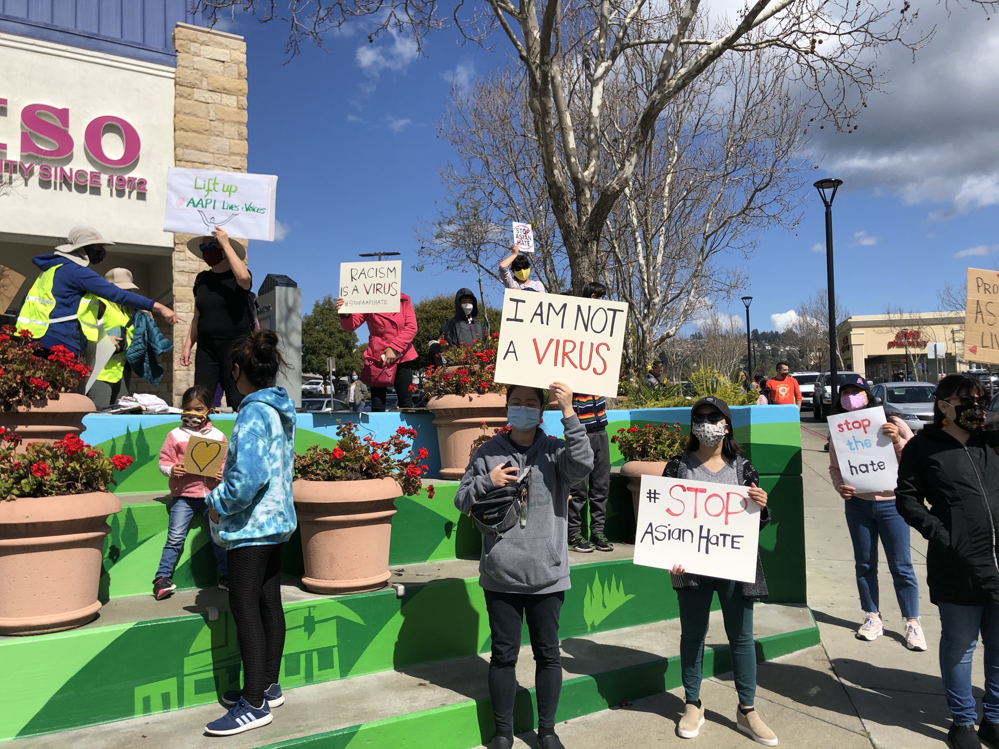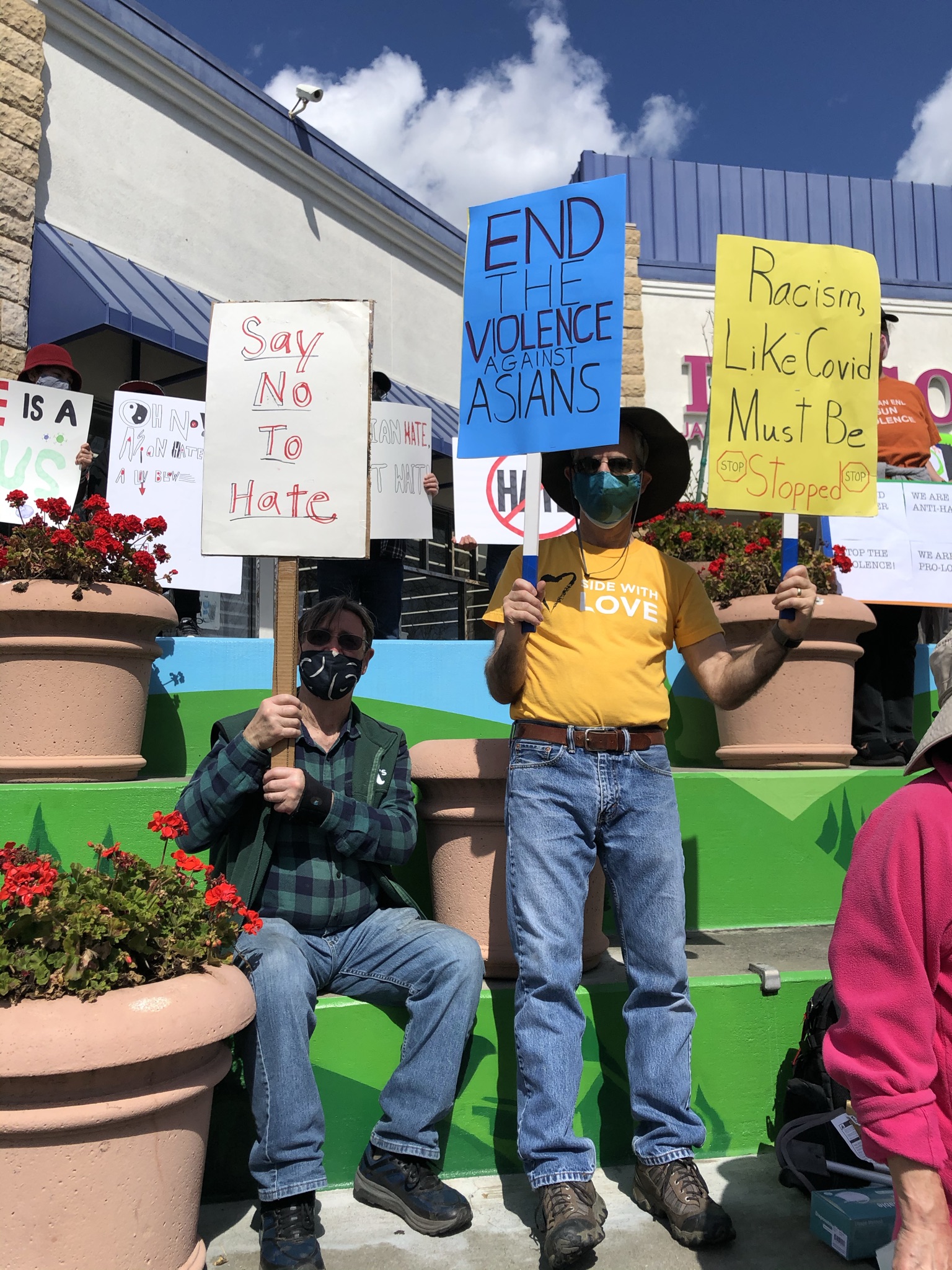 Debbie Smyth has a photo of old abs modern Seoul, Korea for One Word Sunday Opposites fluffy white clouds above Humans with sharp clear signs demanding a stop to hate against Asians. One cloud is even heart shaped. As a photographer I couldn’t help but notice how the sky contrasted with this swiftly organized events.