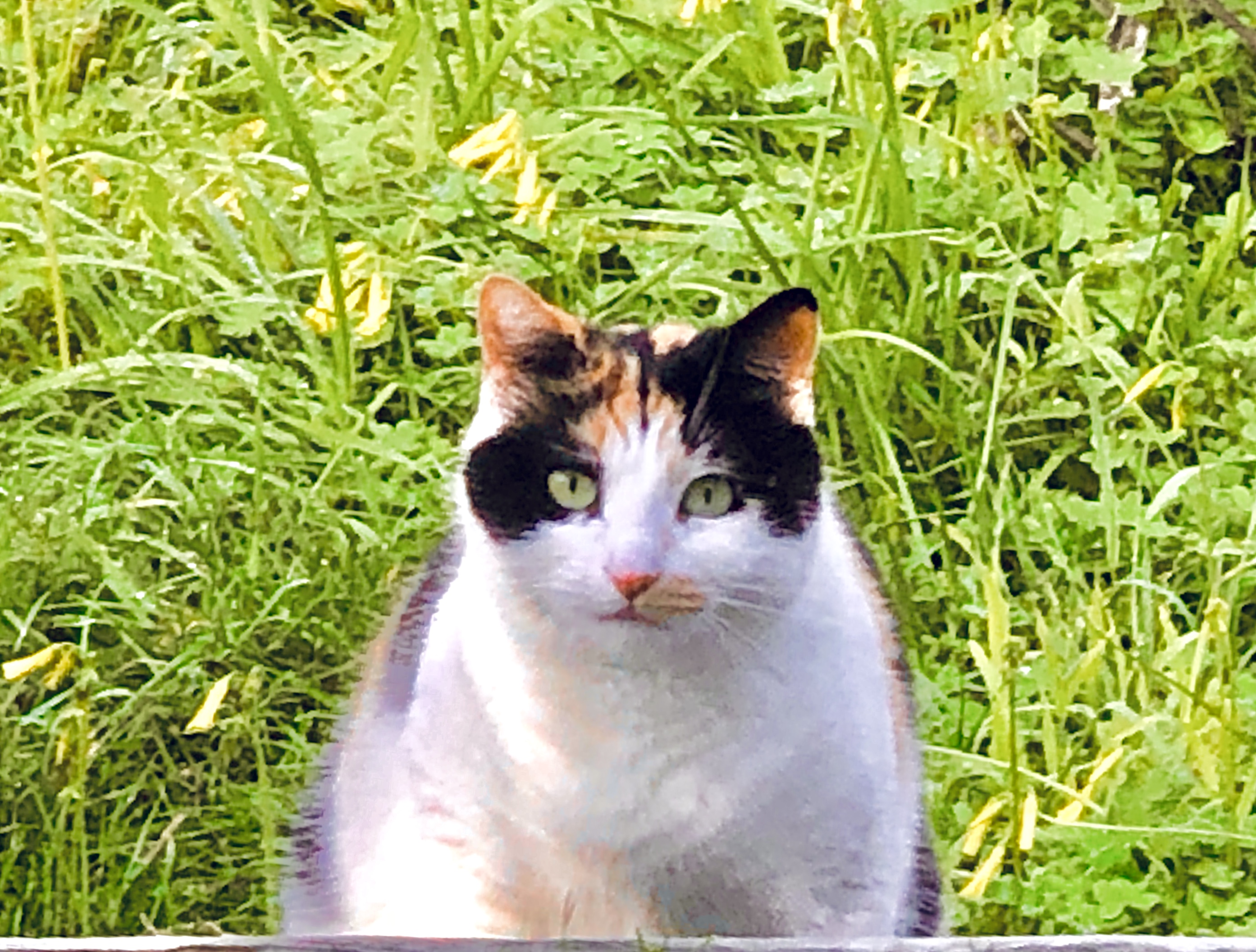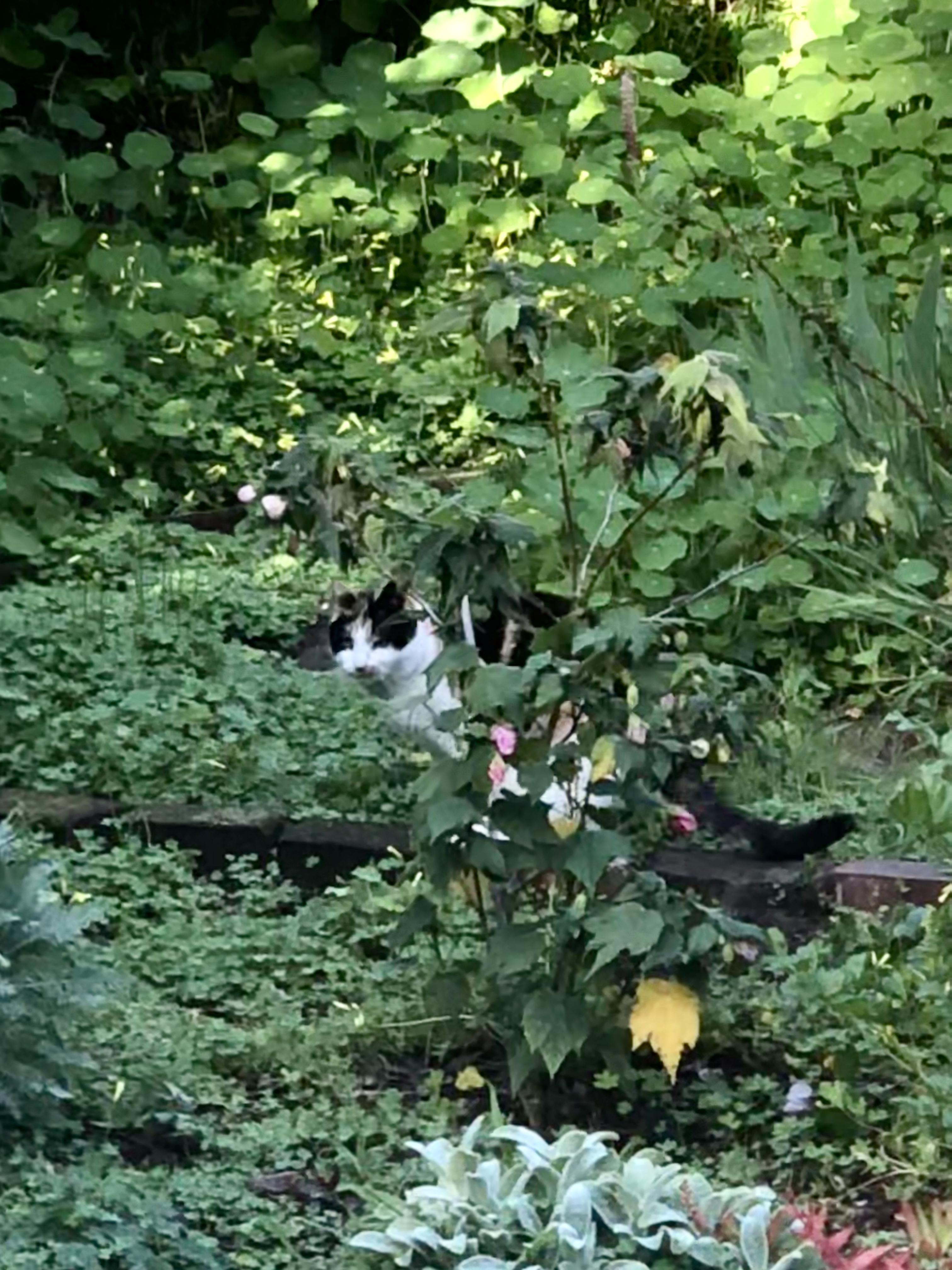 This week Sunday Stills asks us to Respect your CAT. Not owning a cat or having one live in my house I can only share with you the pusses that frequent my garden. This morning Miss Bamboo from the neighbor’s house stopped by to pose among the posies.Can you find her?