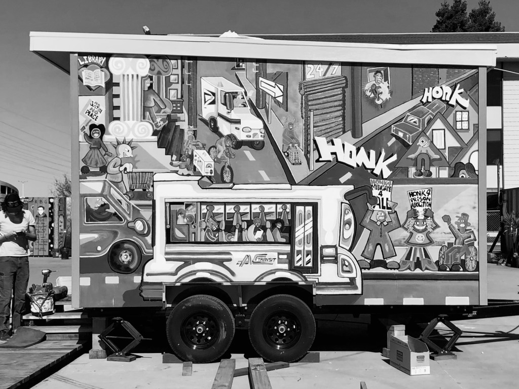 These are all adorable, Carol. Such bravery to ride a bike with stilts. The mural is adorable. It looks cute as your header, too. 🙂