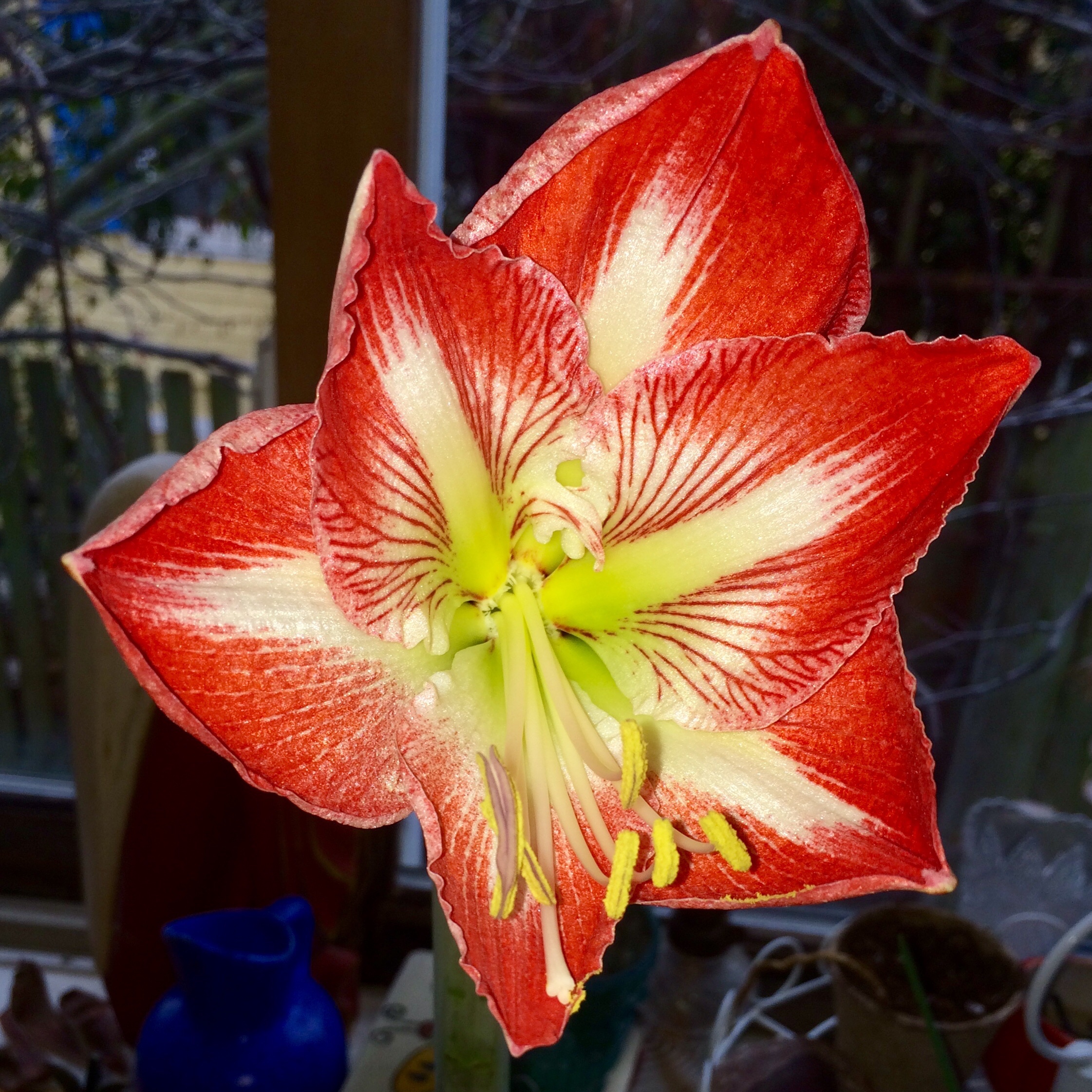 The mask is a skull from Day of the Dead We get use to them in California. who know there were red Lillies ? LikeLike Reply