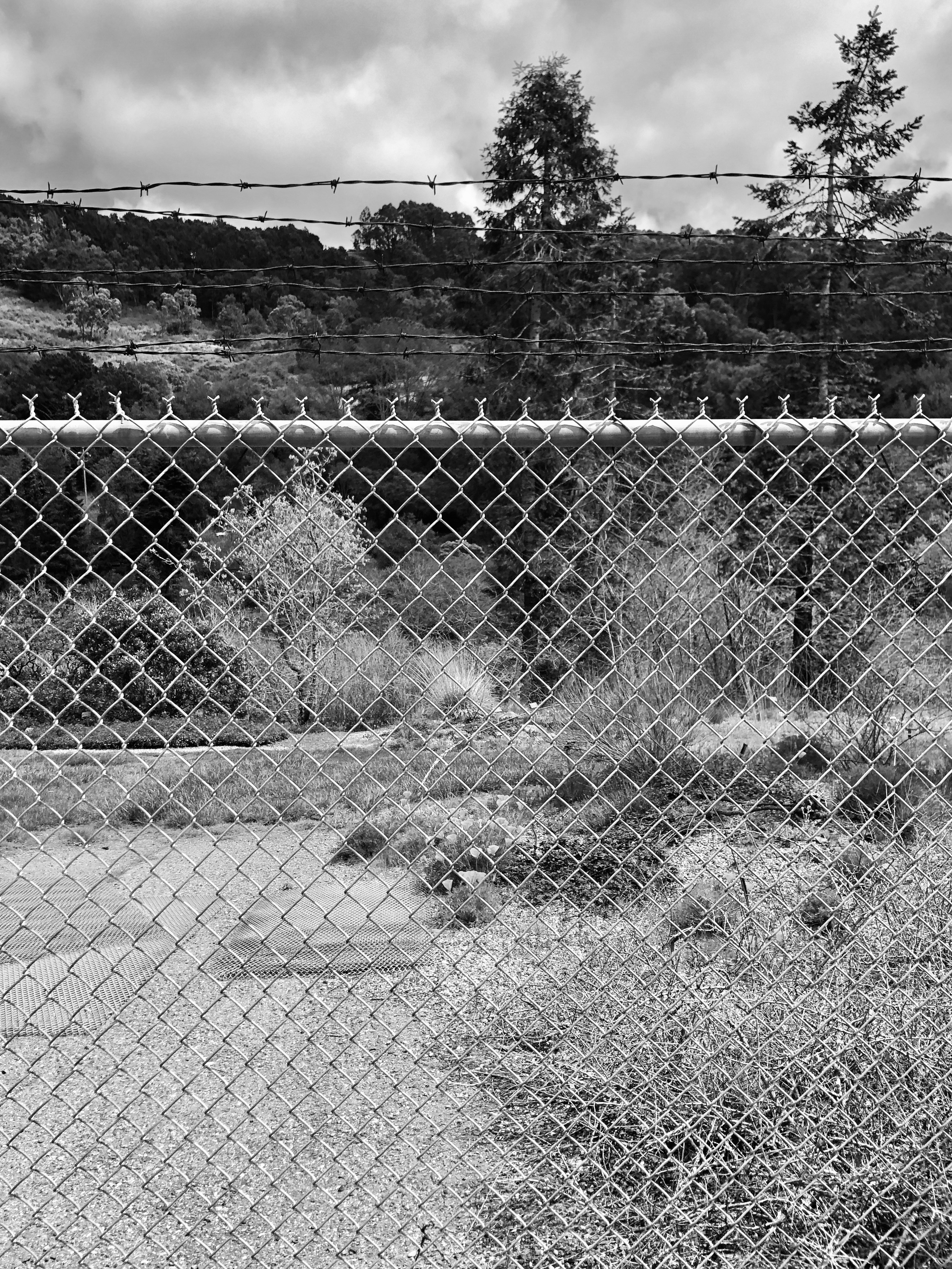 For Cee’s B&W Challenge Fences and Gates Let me start with the fence we encountered in April 2020. Soon after the COVID lockdown we had hoped to go for a walk in our favorite Native Plant Garden only to find the gate locked and the plants behind chain link fences and barbed wire.