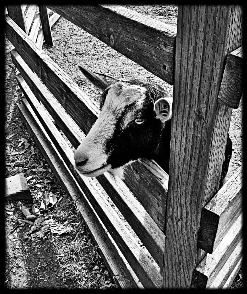 The goat giving me the evil eye from behind the fence makes me glad the boards are there.