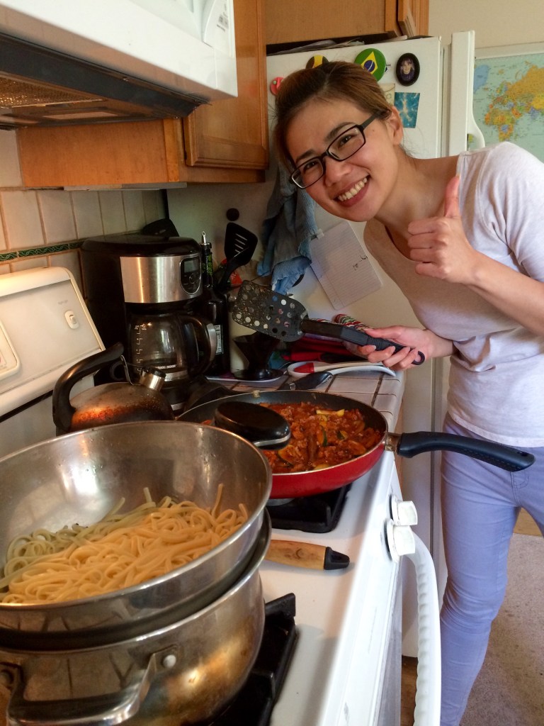 The students tool great pride in cooking a favorite food from their country or learning to make something America, like apple crumble.