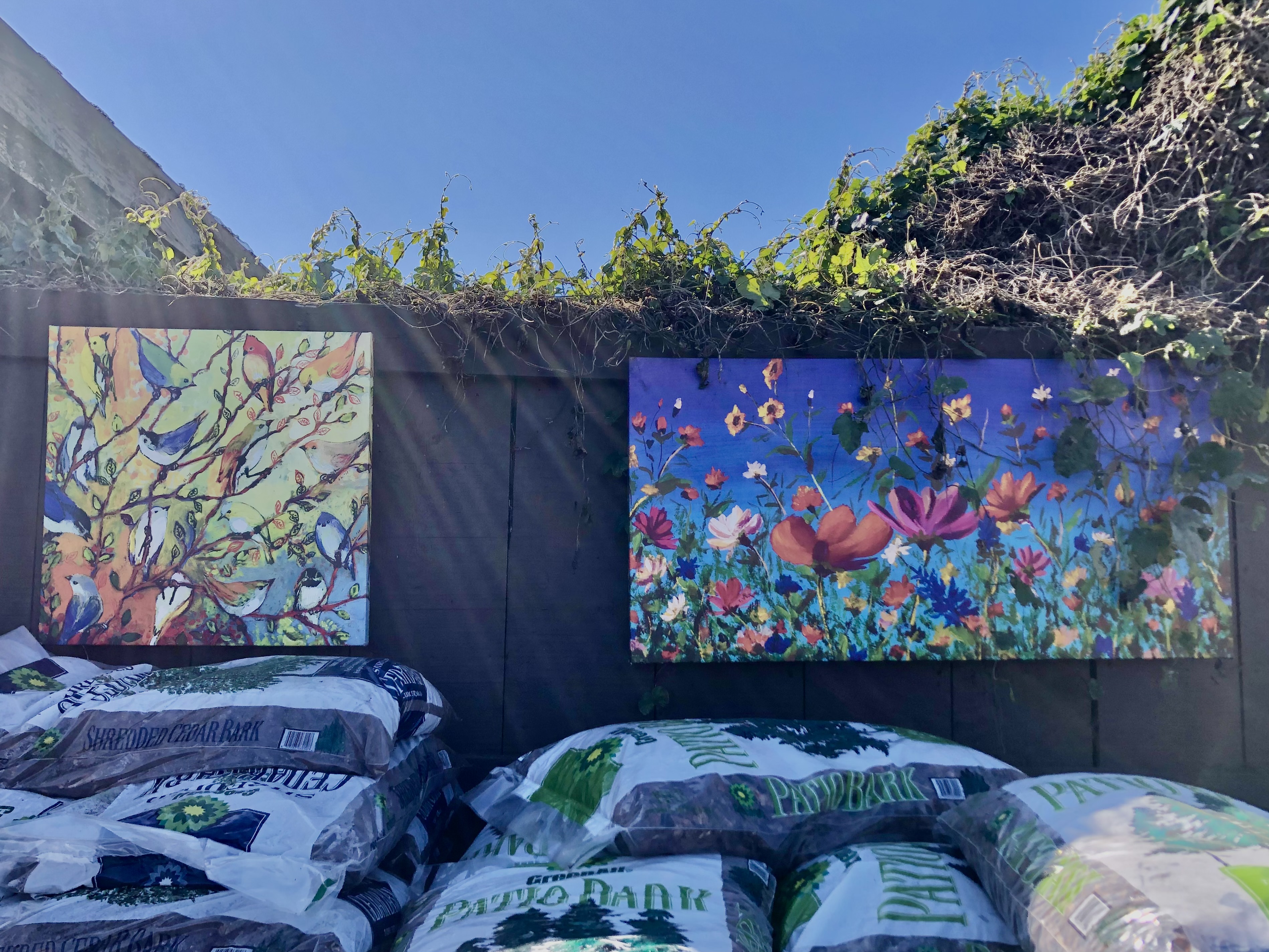 The next are paintings in from the wall at a garden center.