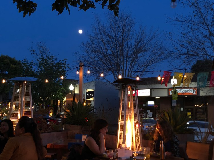 Lots of signs and outdoor eating and i just wanted to share this moon shot too