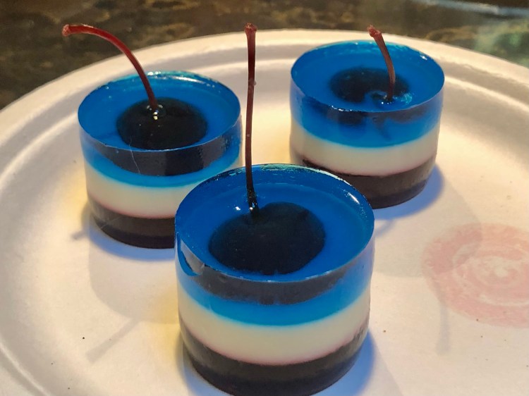 For Cee’s Midweek Madness Challenge Macro she shared 3 candle flames, well i have 3 jello candles My friend makes for 4th of July