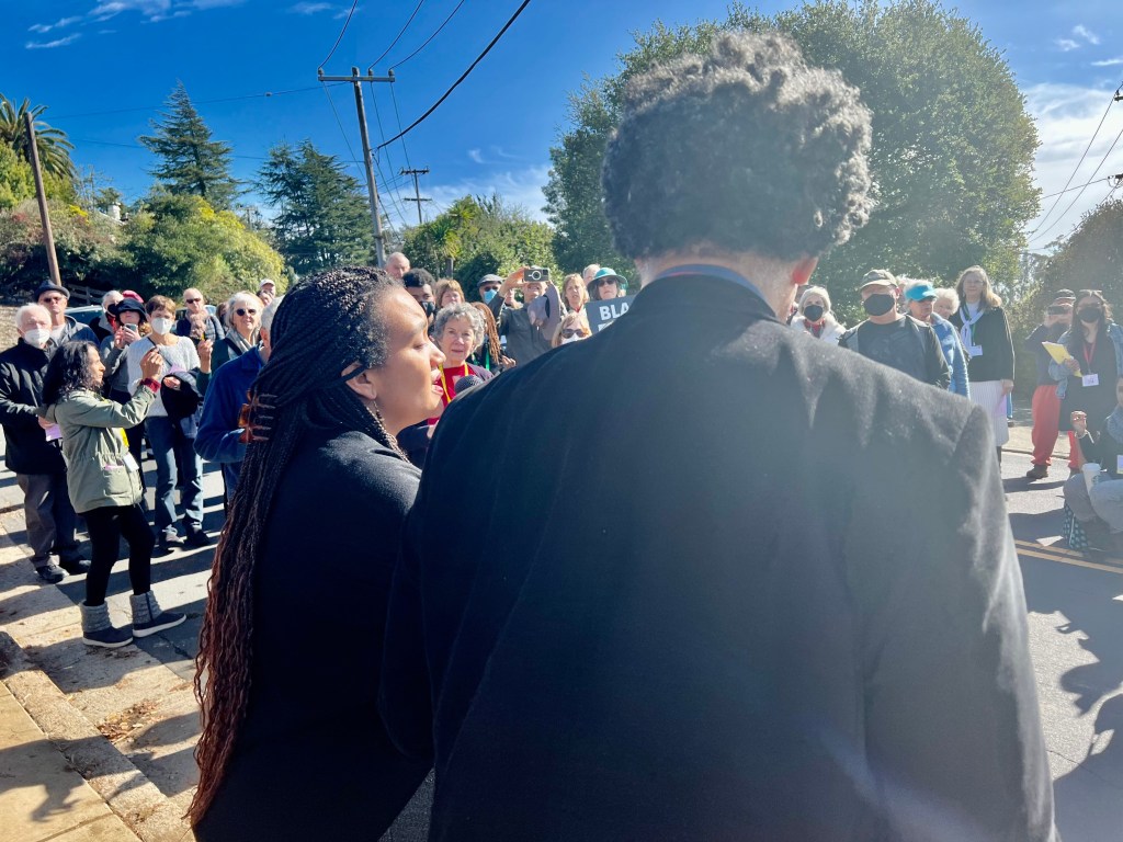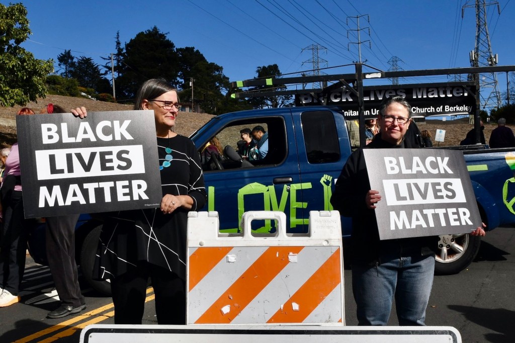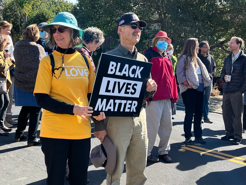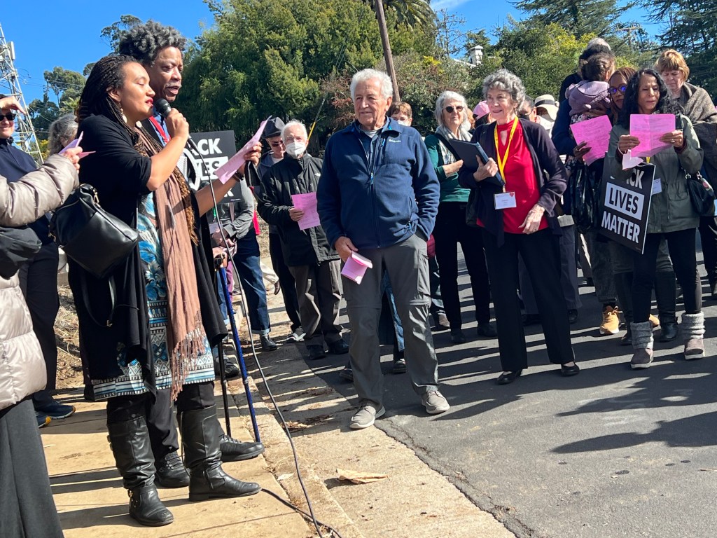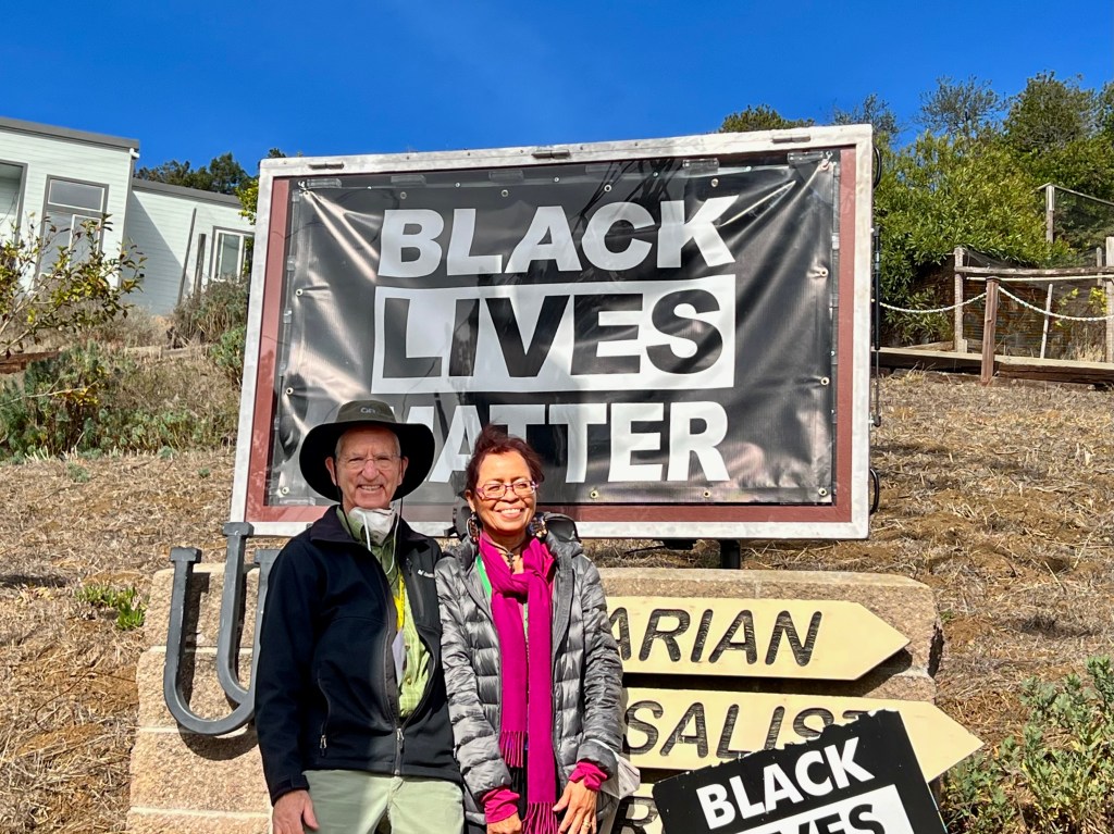 In September the Black Lives Matter sign was badly vandalized November 6th is restored…It was paraded down the hill from The Unitarian Universalist Church of Berkeley, where it was blessed with singing and a poem, before being set in place. Click any image to see full size.