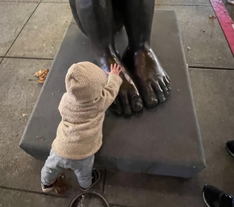 So cute! He has grown so much! Thanks for sharing! You’ve got the perfect example of public art, too.