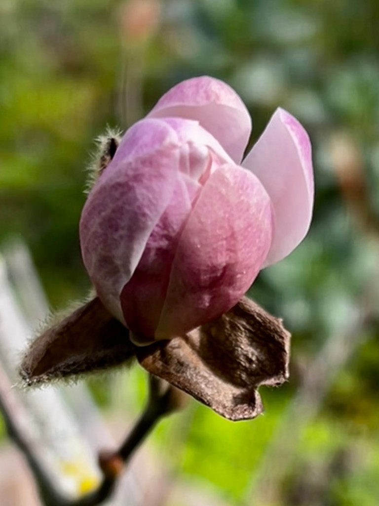 For 2 years now I’ve been experiencing Magnolia Envy. I planted a magnolia that has set in the garden with a few leaves on the end of sticks, as the neighbor behind me magnolia looms over my yard a skyline of pink flowers. You would think it would encourage my little Maggie to join him. Well this year it is happening I have number of buds about to pop open.