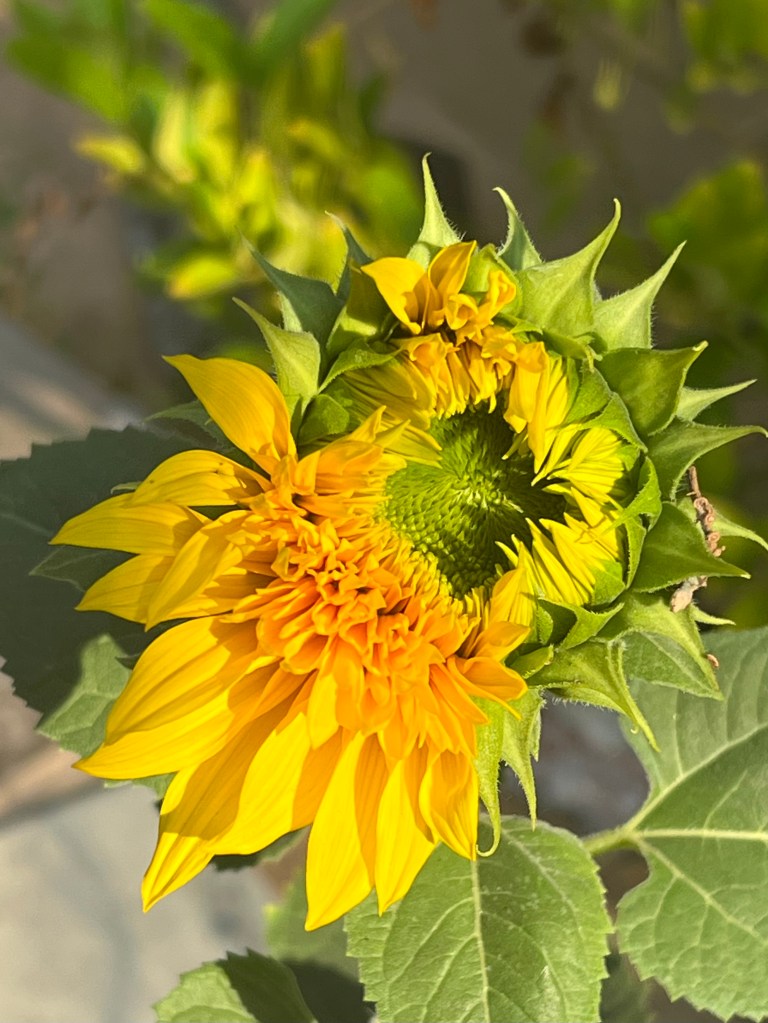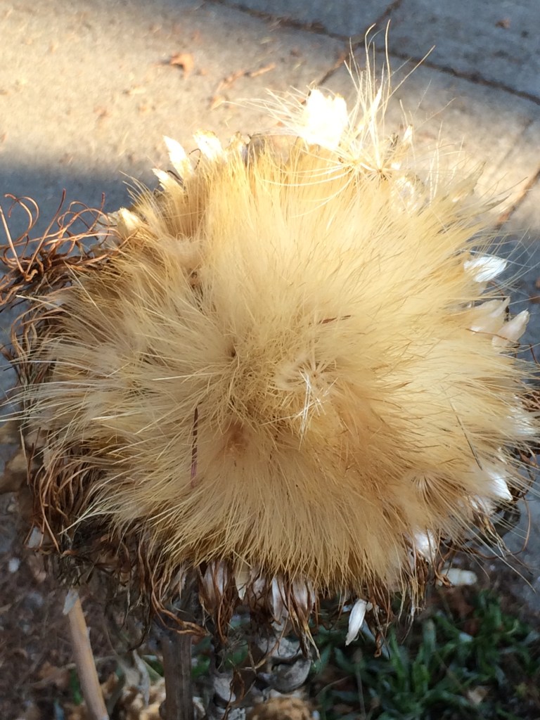 Sunflower and Lion’s Ear blossoms showing where the seeds begin