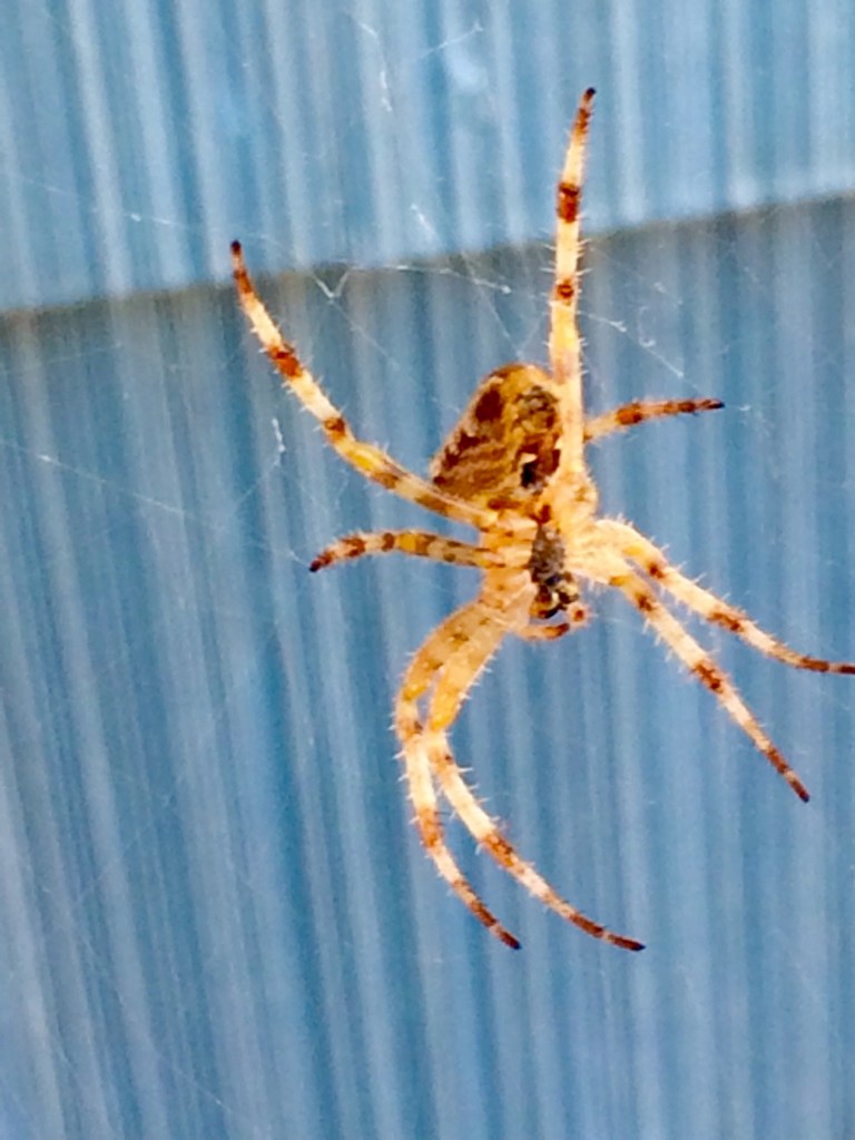 The only spiders I can get photos of around here are papal spiders,A. diademitus, here’s a few photos. Called that because it has a cross or popes hat on its back. I use to see really big ones but lately I mostly see a few small. One year I came across some newly hatched spiders