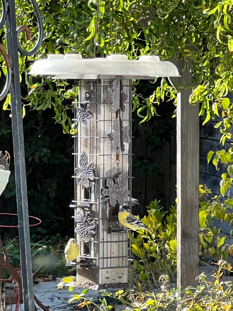Fall Leaves for Sunday Stills-We are ready for winter rains, the grape leaves are off the roof and the bird feeder is full