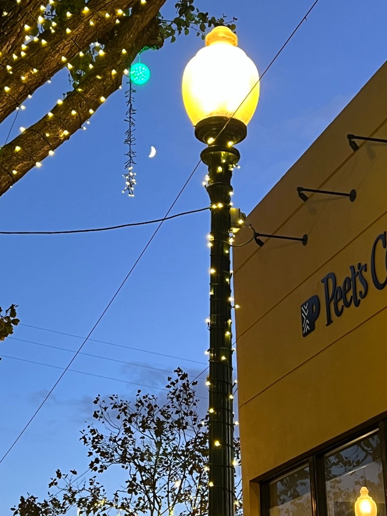 Fun to get back to Cee’s Foto Challenges Tuesdays was CFFC Light Fixtures. Here’s our first visit to Christmas Lights that also includes the moon a fixture one could say.