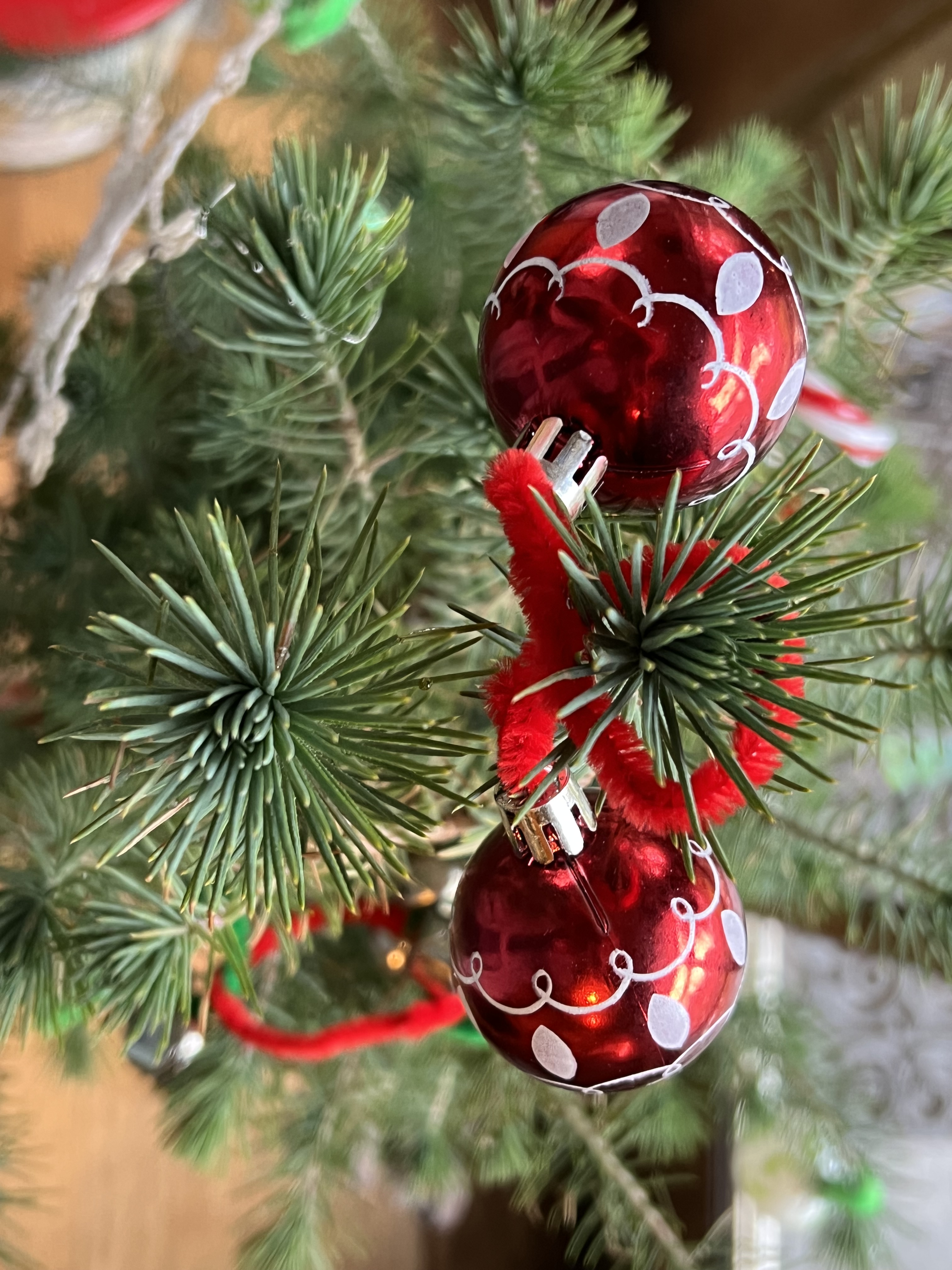 A collection of decorations in red and green