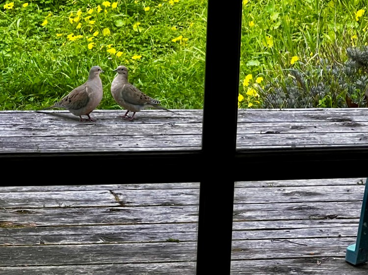 Through (an almost) square camera lens Outside my kitchen door I’ve been watching wooing morning doves-Six Word Saturday 3-23-23 Share this: Click to print (Opens in new window) Print Click to email a link to a friend (Opens in new window) Email Click to share on Reddit (Opens in new window) Reddit Click to share on Facebook (Opens in new window) Facebook Like Loading...
