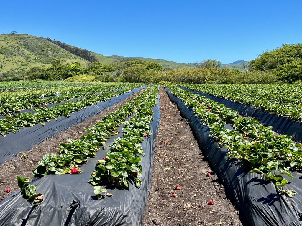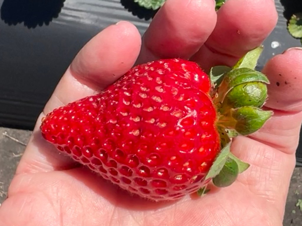 Saturday was opening day of Pick-M- Yourself strawberry picking season on the California coast. The freshly picked strawberry is warm in my hand. Who needs to go out to brunch on Mother’s Day when there’s fresh strawberries at home!