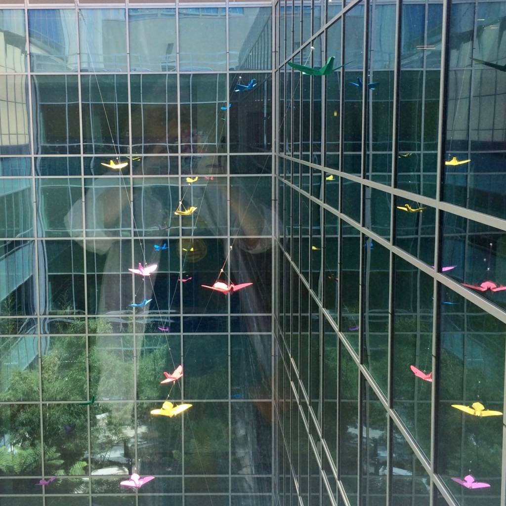 Becky’s Challenge has extraordinary Geometric art work today inspired me to share this…atrium bird cage like installation at the medical center I go to. It makes going for a hearing test an opportunity for a photo shoot too.