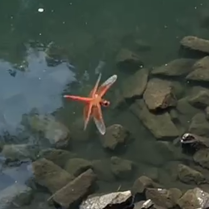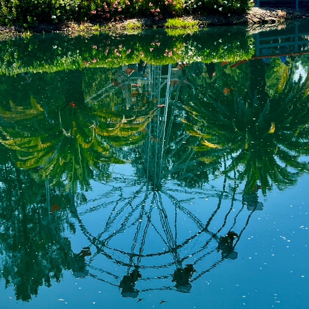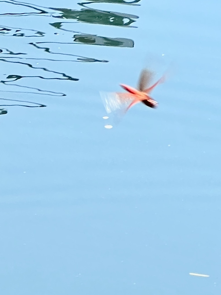They show up in July wherever there is water. Last year I captured a photo in a puddle. This year many of these crimson dragonflies were darting around a pond near a Farris Wheel. I just pointed my iPhone in their direction and clicked.